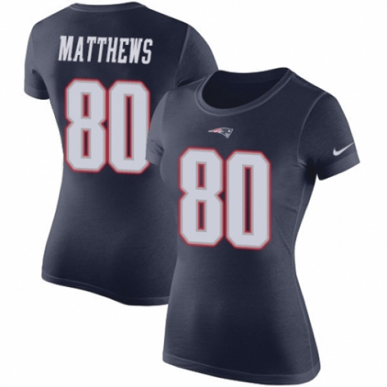 >NFL Women's Nike New England Patriots #80 Jordan Matthews Navy Blue Rush Pride Name & Number T-Shirt