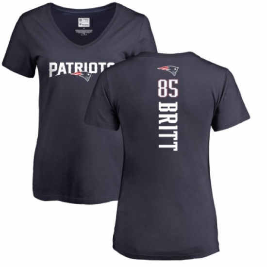 >NFL Women's Nike New England Patriots #85 Kenny Britt Navy Blue Backer T-Shirt