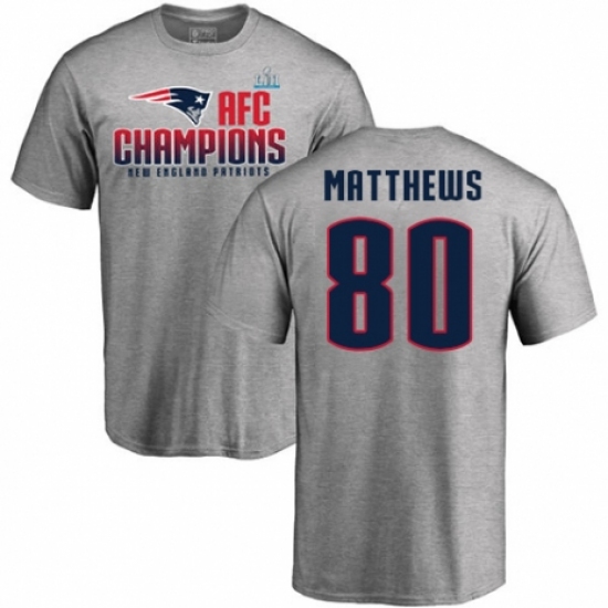 >Nike New England Patriots #80 Jordan Matthews Heather Gray 2017 AFC Champions V-Neck T-Shirt