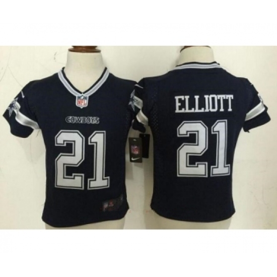 >Toddler Dallas Cowboys #21 Ezekiel Elliott Navy Blue Team Color Stitched NFL Nike Game Jersey
