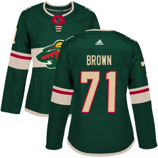 Women's Adidas Minnesota Wild #71 J T Brown Premier Green Home NHL Jersey