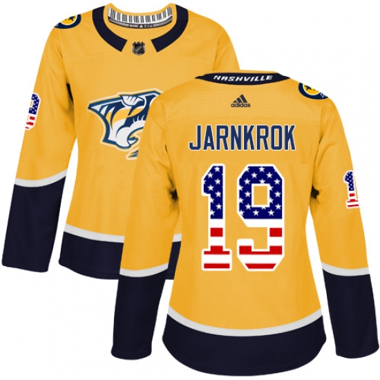 Home>NHL>Nashville Predators>Calle Jarnkrok>Women's Adidas Nashville Predators #19 Calle Jarnkrok Authentic Gold USA Flag Fashion NHL Jersey