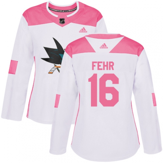 Women's Adidas San Jose Sharks #16 Eric Fehr Authentic White Pink Fashion NHL Jersey