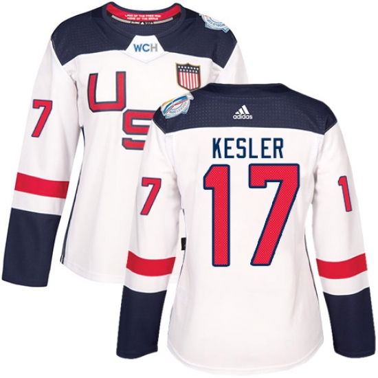 Women's Adidas Team USA #17 Ryan Kesler Authentic White Home 2016 World Cup Hockey Jersey