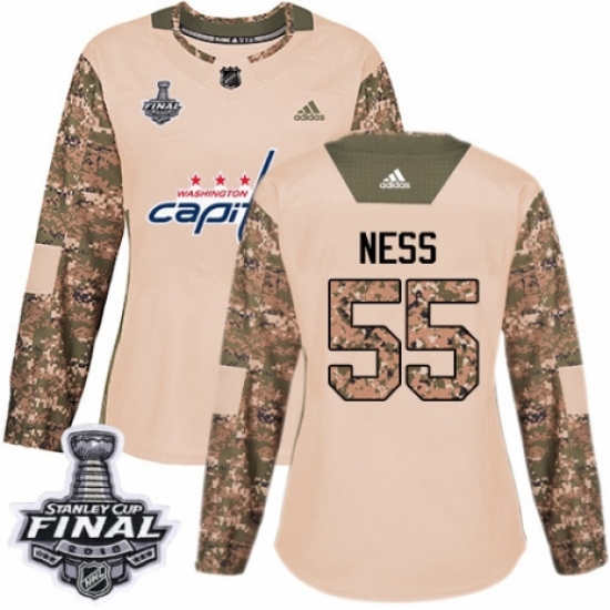 Women's Adidas Washington Capitals #55 Aaron Ness Authentic Camo Veterans Day Practice 2018 Stanley Cup Final NHL Jersey