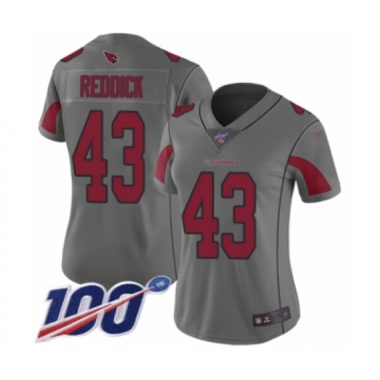 >Women's Arizona Cardinals #43 Haason Reddick Limited Silver Inverted Legend 100th Season Football Jersey