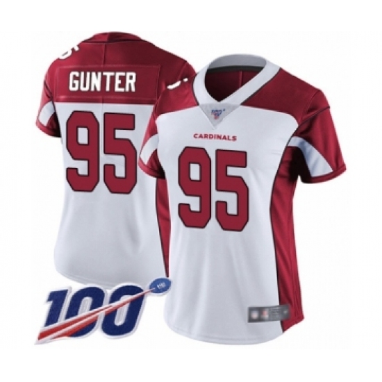 >Women's Arizona Cardinals #95 Rodney Gunter White Vapor Untouchable Limited Player 100th Season Football Jersey