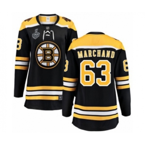 Women's Boston Bruins #63 Brad Marchand Authentic Black Home Fanatics Branded Breakaway 2019 Stanley Cup Final Bound Hockey Jersey