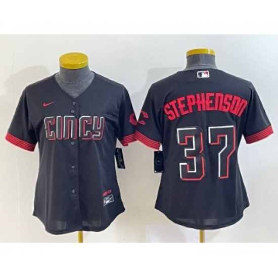 Women's Cincinnati Reds #37 Tyler Stephenson Black 2023 City Connect Cool Base Stitched Jersey1