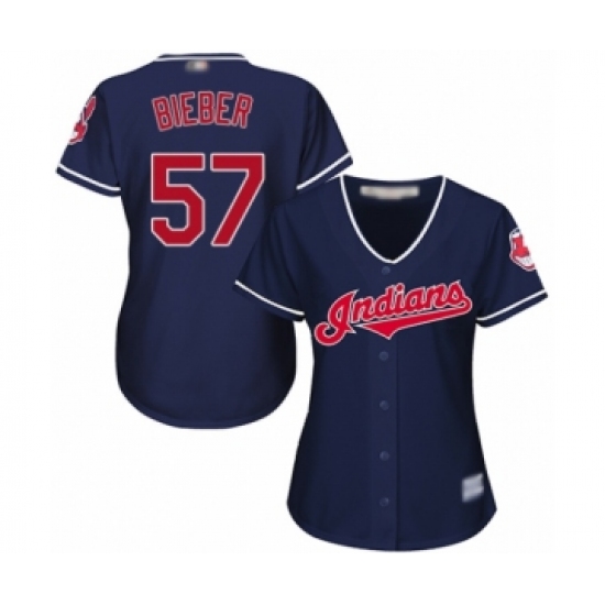 >Women's Cleveland Indians #57 Shane Bieber Authentic Navy Blue Alternate 1 Cool Base Baseball Jersey