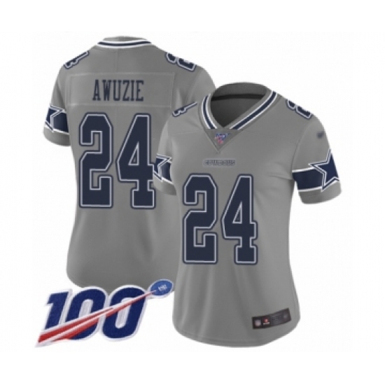 >Women's Dallas Cowboys #24 Chidobe Awuzie Limited Gray Inverted Legend 100th Season Football Jersey