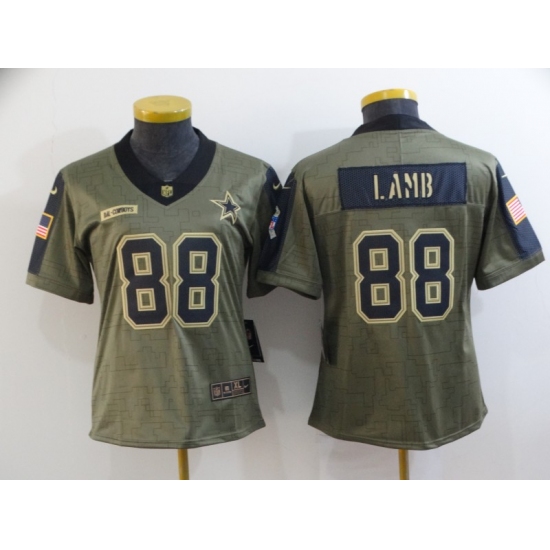>Women's Dallas Cowboys #88 CeeDee Lamb Nike Olive 2021 Salute To Service Limited Player Jersey