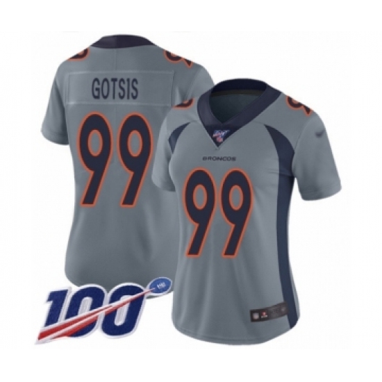 Women's Denver Broncos #99 Adam Gotsis Limited Silver Inverted Legend 100th Season Football Jersey