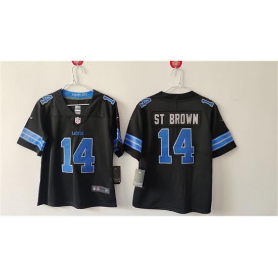 Women's Detroit Lions #14 Amon-Ra St. Brown Black 2nd Alternate Stitched Jersey(Run Smaller)