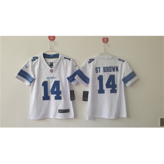>Women's Detroit Lions #14 Amon-Ra St. Brown White Vapor Football Stitched Jersey(Run Smaller)