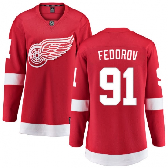 Home>NHL>Detroit Red Wings>Sergei Fedorov>Women's Detroit Red Wings #91 Sergei Fedorov Fanatics Branded Red Home Breakaway NHL Jersey