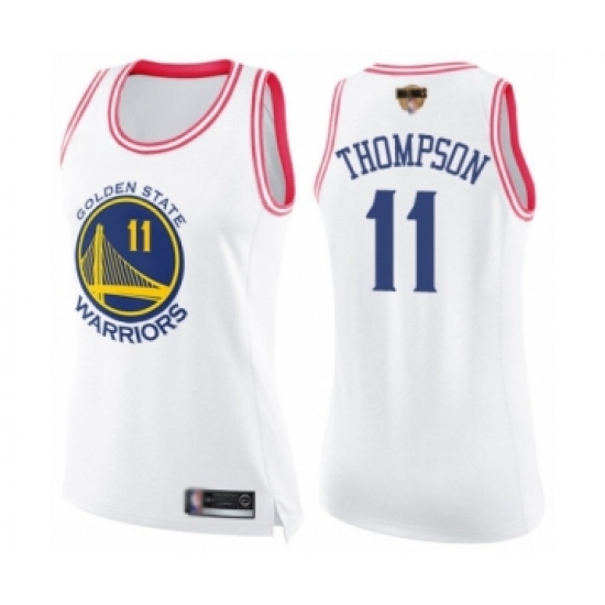 >Women's Golden State Warriors #11 Klay Thompson Swingman White Pink Fashion 2019 Basketball Finals Bound Basketball Jersey