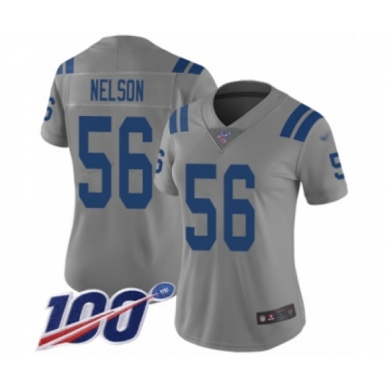>Women's Indianapolis Colts #56 Quenton Nelson Limited Gray Inverted Legend 100th Season Football Jersey