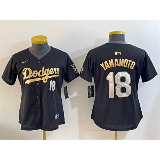 Women's Los Angeles Dodgers #18 Yoshinobu Yamamoto Black Gold Limited Stitched Baseball Jersey(Run Small)