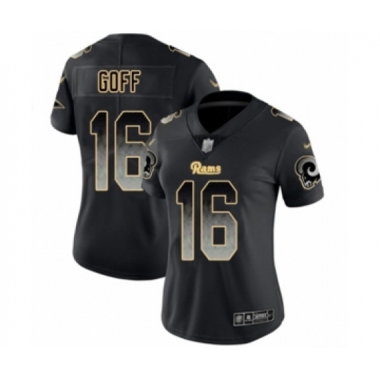 >Women's Los Angeles Rams #16 Jared Goff Limited Black Smoke Fashion Football Jersey