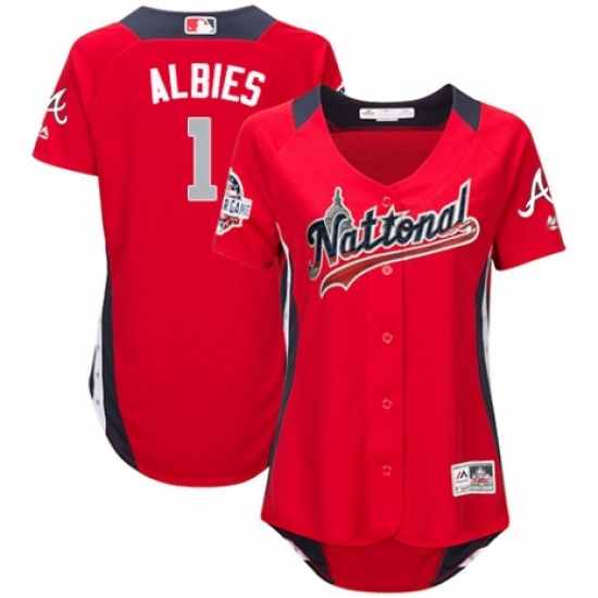 Women's Majestic Atlanta Braves #1 Ozzie Albies Game Red National League 2018 MLB All-Star MLB Jersey