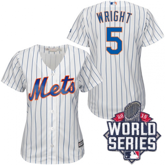 Home>MLB>New York Mets>David Wright>Women's Majestic New York Mets #5 David Wright Authentic White/Blue Strip 2015 World Series MLB Jersey
