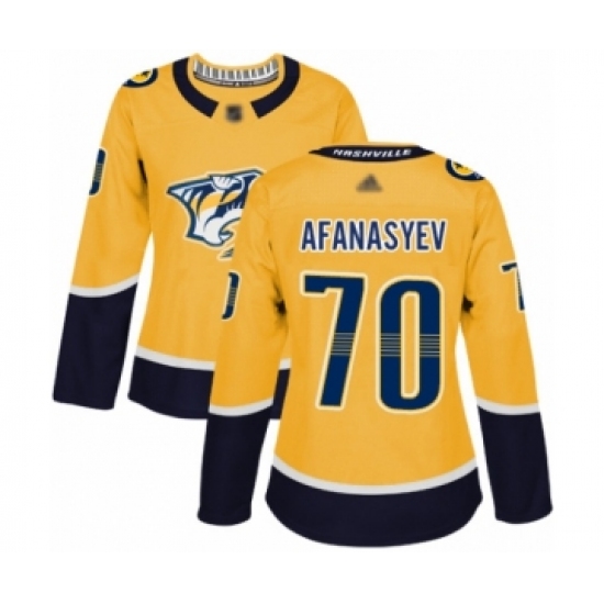 Women's Nashville Predators #70 Egor Afanasyev Authentic Gold Home Hockey Jersey