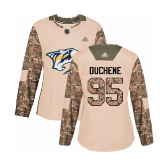 >Women's Nashville Predators #95 Matt Duchene Authentic Camo Veterans Day Practice Hockey Jersey
