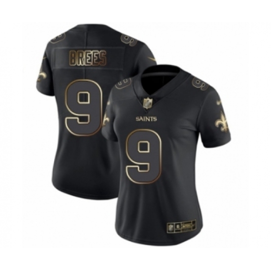 >Women's New Orleans Saints #9 Drew Brees Black Gold Vapor Untouchable Limited Football Jersey