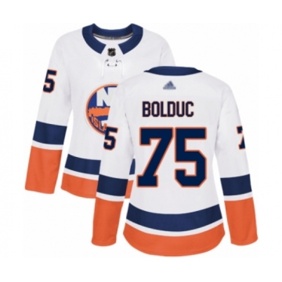 >Women's New York Islanders #75 Samuel Bolduc Authentic White Away Hockey Jersey