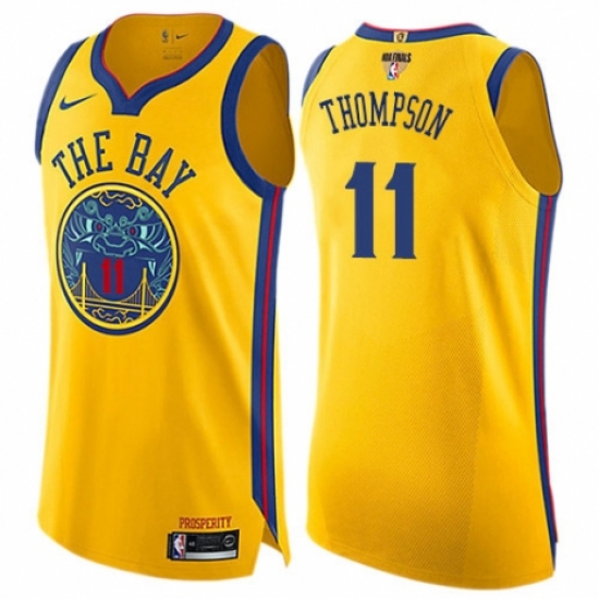 >Women's Nike Golden State Warriors #11 Klay Thompson Swingman Gold 2018 NBA Finals Bound NBA Jersey - City Edition