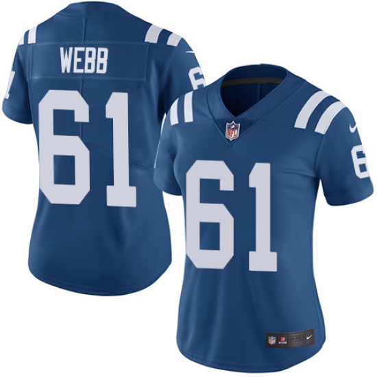 >Women's Nike Indianapolis Colts #61 JMarcus Webb Royal Blue Team Color Vapor Untouchable Limited Player NFL Jersey