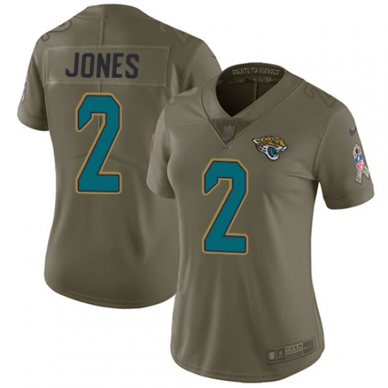 >Women's Nike Jacksonville Jaguars #2 Landry Jones Limited Olive 2017 Salute to Service NFL Jersey