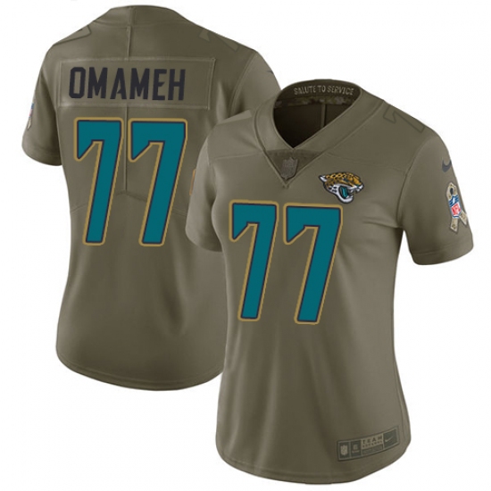 Home>NFL>Jacksonville Jaguars>Patrick Omameh>Women's Nike Jacksonville Jaguars #77 Patrick Omameh Limited Olive 2017 Salute to Service NFL Jersey