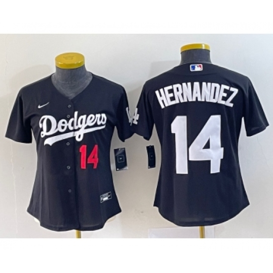 Women's Nike Los Angeles Dodgers #14 Enrique Hernandez Number Black Stitched Cool Base Jersey