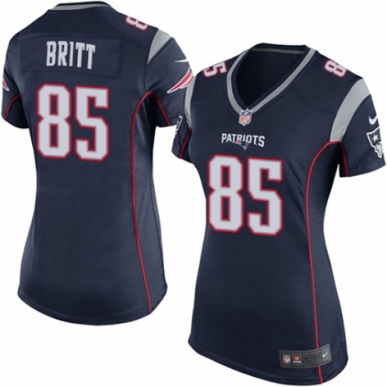 >Women's Nike New England Patriots #85 Kenny Britt Game Navy Blue Team Color NFL Jersey