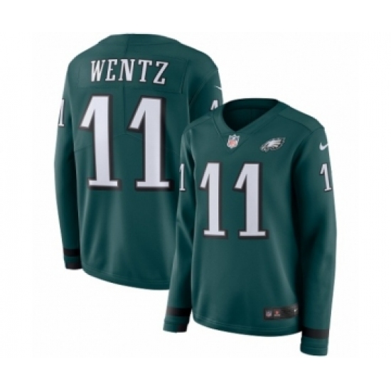 >Women's Nike Philadelphia Eagles #11 Carson Wentz Limited Green Therma Long Sleeve NFL Jersey