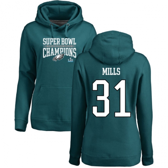 Women's Nike Philadelphia Eagles #31 Jalen Mills Green Super Bowl LII Champions Pullover Hoodie