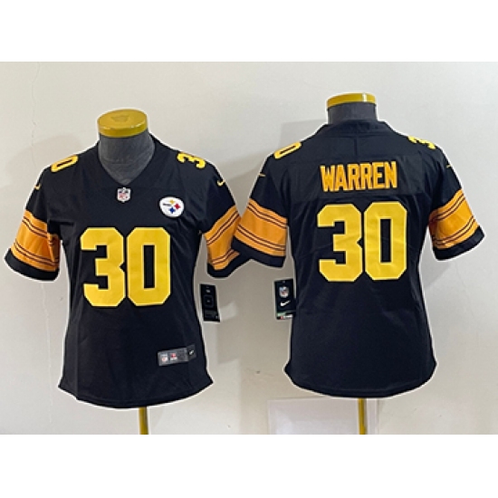 >Women's Nike Pittsburgh Steelers #30 Jaylen Warren Black Color Rush Stitched Jersey