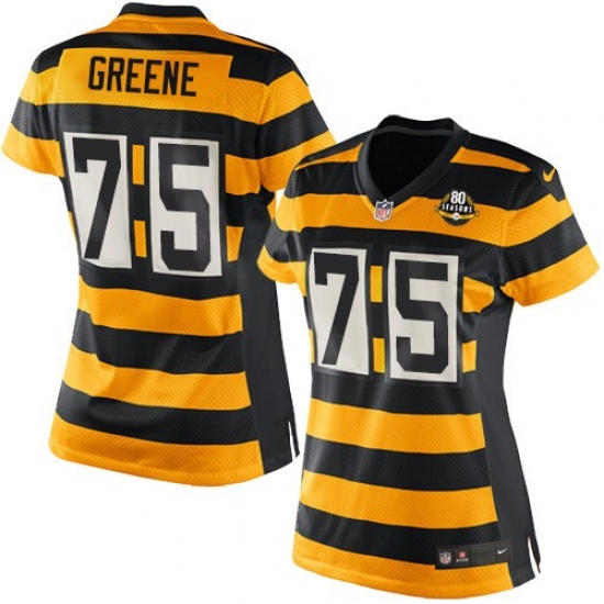 Home>NFL>Pittsburgh Steelers>Joe Greene>Women's Nike Pittsburgh Steelers #75 Joe Greene Game Yellow/Black Alternate 80TH Anniversary Throwback NFL Jersey
