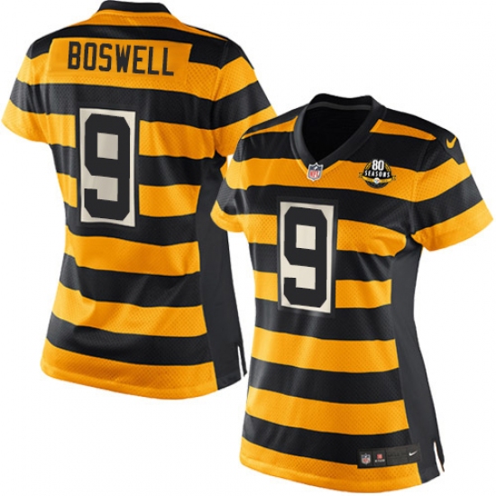 Home>NFL>Pittsburgh Steelers>Chris Boswell>Women's Nike Pittsburgh Steelers #9 Chris Boswell Game Yellow/Black Alternate 80TH Anniversary Throwback NFL Jersey