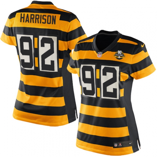 Women's Nike Pittsburgh Steelers #92 James Harrison Limited Yellow/Black Alternate 80TH Anniversary Throwback NFL Jersey