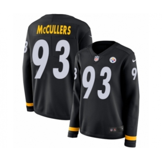 >Women's Nike Pittsburgh Steelers #93 Dan McCullers Limited Black Therma Long Sleeve NFL Jersey
