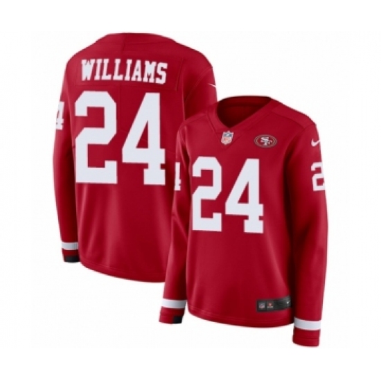 >Women's Nike San Francisco 49ers #24 K'Waun Williams Limited Red Therma Long Sleeve NFL Jersey