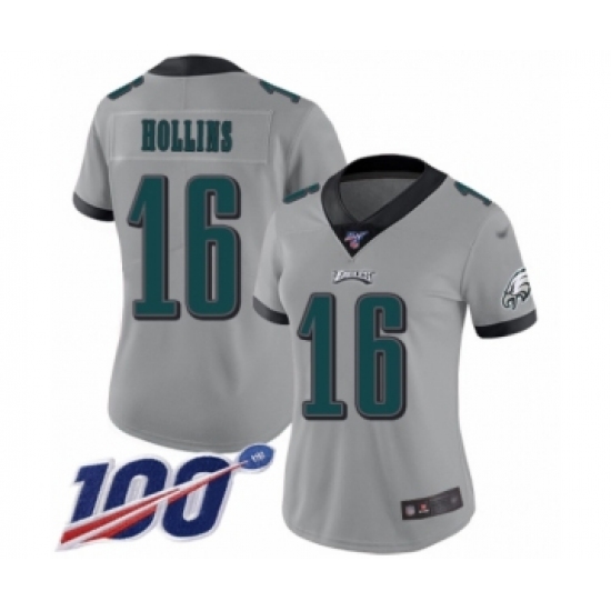 >Women's Philadelphia Eagles #16 Mack Hollins Limited Silver Inverted Legend 100th Season Football Jersey