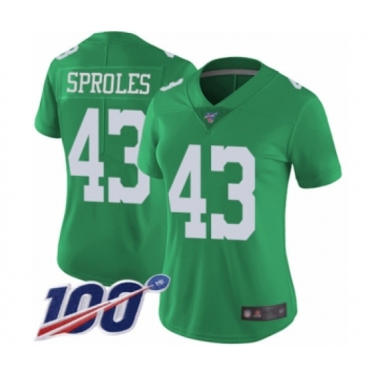 >Women's Philadelphia Eagles #43 Darren Sproles Limited Green Rush Vapor Untouchable 100th Season Football Jersey