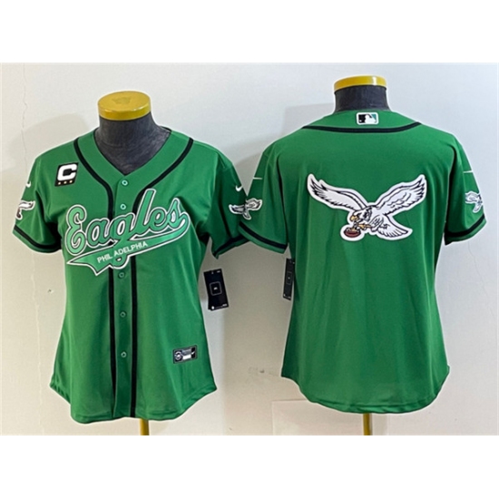 >Women's Philadelphia Eagles Green Team Big Logo With 3-Star C Cool Base Stitched Baseball Jerseys