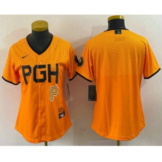 >Women's Pittsburgh Pirates Blank Clemente Yellow 2023 City Connect Stitched Jersey