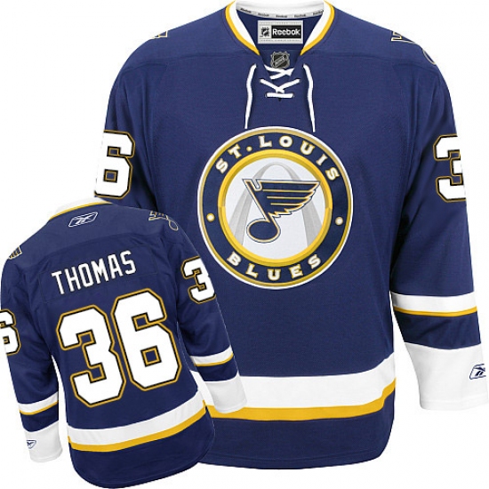 Home>NHL>St. Louis Blues>Robert Thomas>Women's Reebok St. Louis Blues #36 Robert Thomas Premier Navy Blue Third NHL Jersey