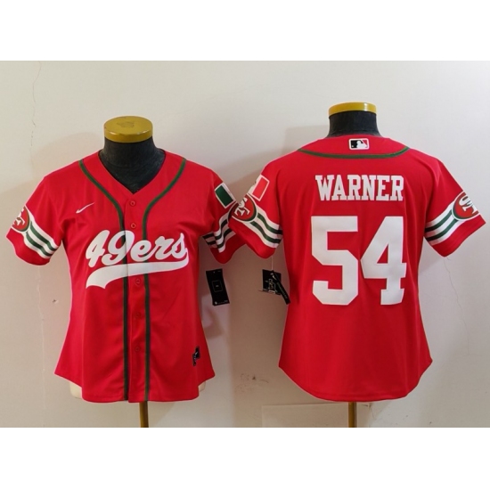 >Women's San Francisco 49ers #54 Fred Warner Red Mexico Cool Base Stitched Baseball Jersey